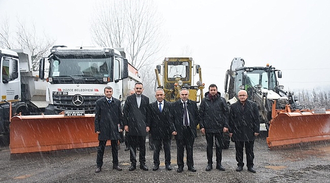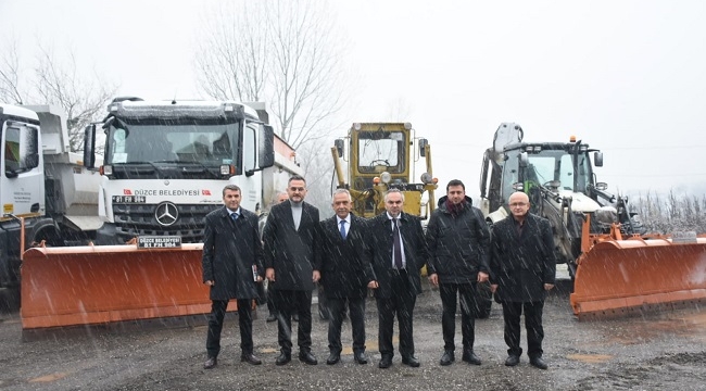 Düzce Belediye Başkanı Dursun Ay, Düzce Belediyesi şantiyesinde hazır bulunan karla mücadele araç filosunu inceleyerek kar yağışına karşı yapılacak çalışmaların değerlendirildiği "Karla Mücadele ve Kriz Merkezi" toplantısına başkanlık etti.