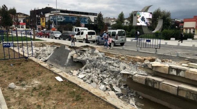 Düzce Valiliği'nin önünde bulunan süs havuzları yıkıldı.