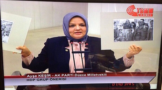AK Parti Düzce Milletvekili, Tanıtım ve Medya Başkan Yardımcısı Ayşe Keşir, HDP’nin kadın hakları konusunda meclise verdiği grup önergesi hakkında partisi adına mecliste söz aldı. Keşir, “ Dağa kaçırılan, istismar edilen, intihar eden, infaz edilen kız çocuklarının hakkını savunamayan HDP, kadın hakları önergesi vermiş. Ben de kendilerine ayna tuttum” dedi.
