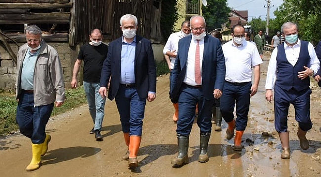 AK Parti İl Başkanı Mustafa Keskin ile milletvekili Fahri Çakır selden sonra , Gölyaka'da inceleme yaptı.