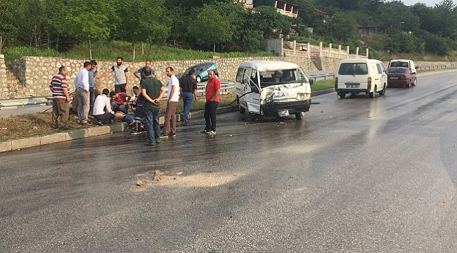 Düzce D-655 karayolu üzerinde meydana gelen trafik kazasında kontrolden çıkan minibüs aydınlatma direğine çarptı.