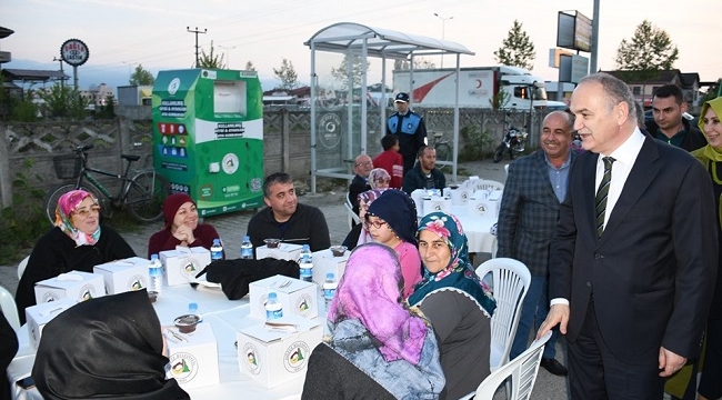 Düzce Belediye Başkanı Dr. Faruk Özlü Ramazan ayı dolayısıyla başlatılan iftar organizasyonunun ilkinde mahalle sakinleri ile iftar yaptı.