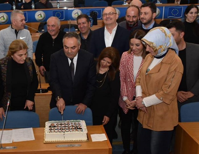 Meclis üyeleri birbirinden helallik isterken, Belediye Başkanı Dursun Ay kısa bir değerlendirmede bulundu, 1,5 yıl önce göreve geldiğini hatırlatan Ay, bu sürede yapılan çalışmaları anlattı. Başkan Ay, “ artık sona geldik” dedi ve hep birlikte fotoğraflarının olduğu pasta kesildi.