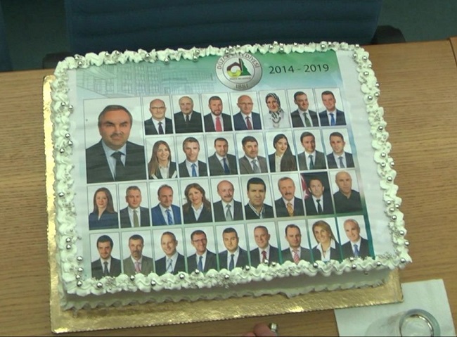 Düzce belediye Meclisi 31 Mart Yerel Seçimleri öncesinde döneminin son toplantısını yaptı. 2014-2019 dönemi meclis üyeleri toplantı sonunda veda pastası kesti.Düzce Belediye Meclisi 2014-2019 dönem üyeleri 31 Mart Yerel Seçimler öncesi son toplantısında duygusal anlar yaşadı. AK Parti’li ve MHP’li meclis üyelerinin katıldığı toplantı sonunda düzenlenen veda töreninde meclis üyelerinin fotoğraflarının yer aldığı pasta kesildi.Düzce Belediye Başkanı Dursun Ay’ın başkanlığında toplanan son meclise MHP düzce Belediye Başkan Adayı Erdoğan Bıyık ile İYİ Parti-CHP Düzce Belediye Başkan Adayı Ömer Küçük de katıldı. Konuk olarak toplantıyı izleyen Bıyık ve Küçük, 5 yıl boyunca Düzce için emek veren meclis üyelerine teşekkür etti.