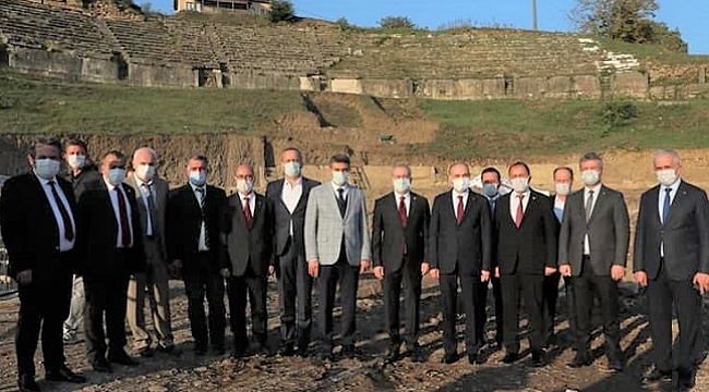 Partisinin il kongresi için Düzce’ye gelen mhp Genel Başkan Yardımcısı Sadir Durmaz konuralp Antik Kenti inceledi.KONURALP PİLAVI İKRAM ETTİDurmaz’ın yanı sıra MHP düzce Milletvekili Ümit Yılmaz, ilçe belediye başkanları, il ve merkez ilçe yöneticileri ve MHP meclis üyelerinin de hazır bulunduğu ziyarette Konuralp Pilavı ikram edildi. ANTİK KENTİ GEZDİLERArdından kazı alanına geçen heyet, Konuralp Müze Müdürü İhsan Arslan’ın rehberliği eşliğinde bölgeyi gezdi. Tarihi bölge ve kazı çalışmaları hakkında bilgiler alan MHP Genel Başkan Yardımcısı Durmaz, Başkan Özlü’ye Konuralp Antik Kentinin Türkiye ve Dünyaya tanıtılması adına özverili çalışmalarından ötürü teşekkür ederek bölgeden ayrıldı.