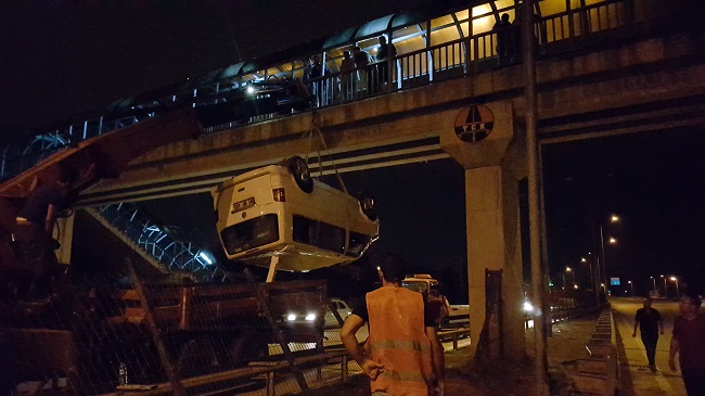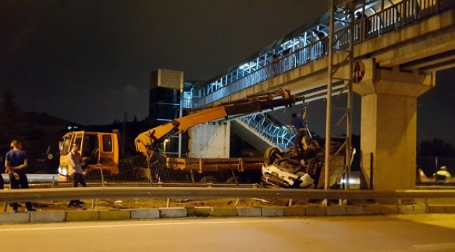 D-100 karayolu üzerinde meydana gelen kazada kontrolden çıkan bir minibüs takla atarak üst geçit ayaklarına vurdu ve orta şeritte durdu. Kazada ölen yada yaralanan olmadı.