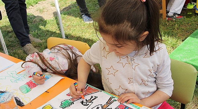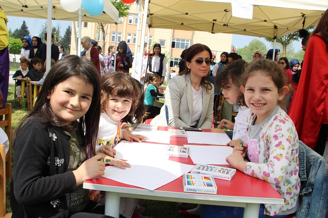 Düzce'de düzenlenen şenlikte kentte eğitim gören 32 anaokulu öğrencileri, çizdikleri rengarenk resimlerle hayallerini anlattılar.