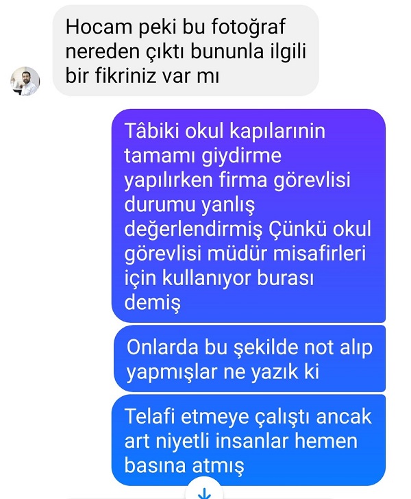 Sosyal medyaya yansıyan olay tepkilere yol açtı.Okul Müdürü Suzan Çiner, sosyal medya üzerinden yaptığı açıklamada, tuvaletin kapısına "Müdür WC" giydirmesinin kendi bilgisi dışında yapıldığını söyledi. İşte o paylaşım: