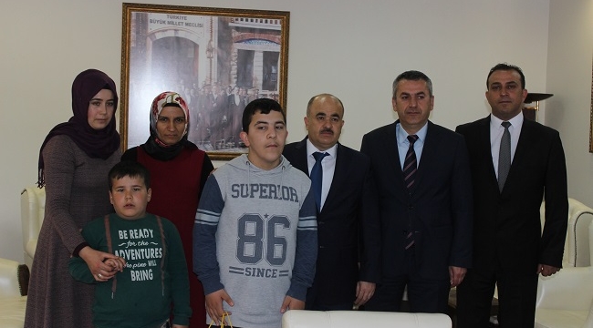 Özel Eğitim Uygulama Merkezi Müdürü Mustafa Çalışan özel öğrenciler Oğuzhan Mazlum ve Erdem Karaağaç ile birlikte Vali Zülkif Dağlı’yı makamında ziyaret ettiler.