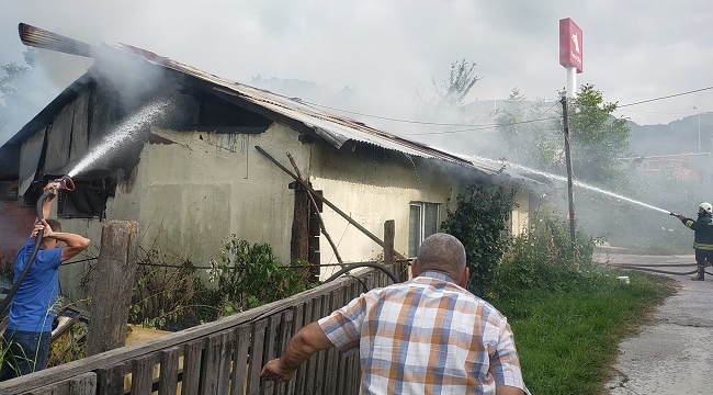 kaynaşlı D-100 karayolu kenarında bulunan Hamdi Aydın'a ait evde yangın çıktı. Çatı katında elektrik kontağından çıktığı tahmin edilen yangında alevler bir anda prefabrik evi sardı.