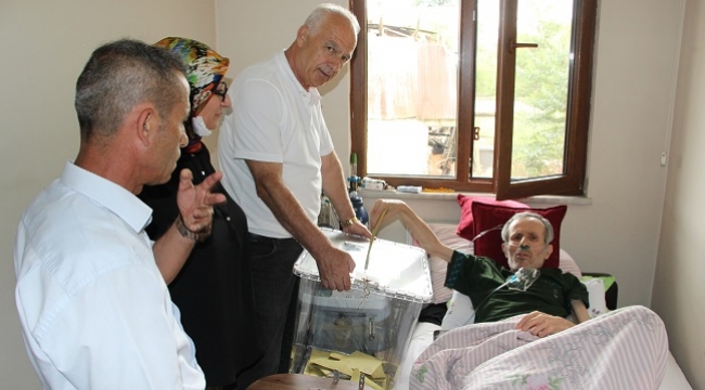 Yüksek seçim Kurulu (YSK) tarafından okullarda kurulan sandıklara gidemeyecek durumdaki hastalar için uygulamaya konulan seyyar sandık uygulaması kapsamında düzce Merkez İlçe Seçim Kurulu’na başvuru yapan 40 kişinin evine sandıklar gitti. KOAH hastası vatandaş da oyunu evinde kullandı.