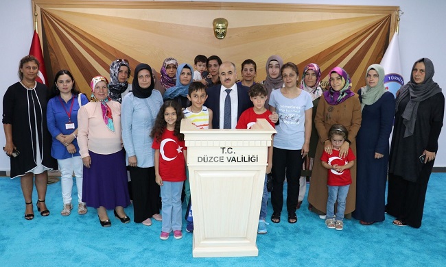 Aile ve Sosyal Hizmetler Derneği koordinesinde düzce Valisi Zülkif Dağlı’nın eşi Nurgül Dağlı’nın himayesinde Düzce’ye 16 ilden gelen şehit yakınlarının Düzce’de ki 4 günlük tatili sona erdi. Düzce’den ayrılacak olan şehit çocukları, ayrılmadan önce vali Zülkif Dağlı ve Aile ve Sosyal Politikalar İl Müdürü Zeki Yıldırım’ı ziyaret ederek teşekkür ettiler.