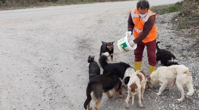 Düzce Belediyesi, koronavirüsle mücadele kapsamında sürdürdüğü temizlik, dezenfekte ve ilaçlama çalışmalarının yanı sıra yiyecek bulmakta zorlanan sokak hayvanlarını da unutmuyor.