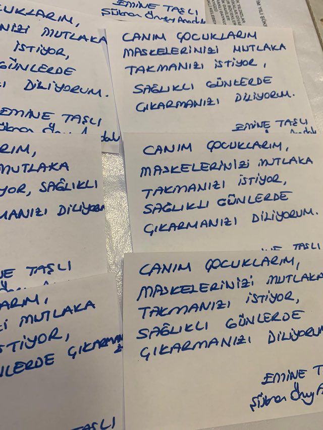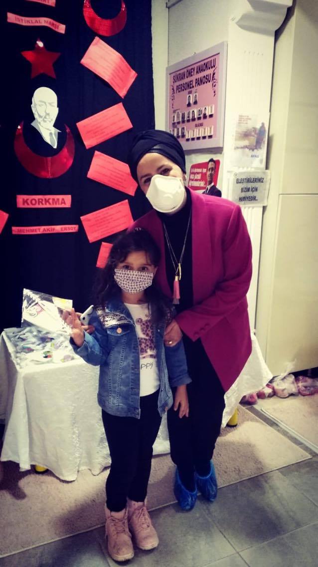 Şükran Öney Anaokulu Müdiresi Emine Taşlı Anaokulu öğrencilerine maske takmayı zevkli hale getirebilmek için çocukların en sevdiği çizgi film karakterlerinden oluşan yıkanabilir maske hediye etti.Maskelerin bir kısmını evlerine giderek ulaştıran Taşlı, bir kısmını da çocukların izin günü olması nedeniyle okulu özledikleri düşünülerek sosyal mesafe çerçevesinde okulda teslimini sağladı. Pandemi sürecini değerlendiren Emine Taşlı; “Çocuklarımızın bu süreci en hasarsız şekilde atlatmaları için Okul Veli işbirliğini çok daha sıkı tutarak 12 haftadır hiç ara vermeden Uzaktan Eğitim Çalışmalarımızı, görüntülü grup görüşmelerimizi ve en önemlisi EBA ile eğitimlerimize devam ediyoruz. Bu arada düzce il Milli Eğitim Müdürlüğümüzce yürütülen “Öğretmenim Yanı Başımda” projesi kapsamında çalışmalarımız detaylı bir şekilde durmaksızın ilerliyor. Onları çok özlediğimizi ailelerimiz ile ortak emanetimiz olan çocuklarımızla gönül birlikteliğimizi hissettirmek istedik. Sağlıklı günlerde maskelerini çıkarmaları umuduyla maskelerimizi izin günlerinde teslim ettik.” dedi.