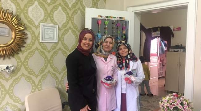 Şükran Öney Anaokulu Okul Müdürü Emine Taşlı, öğretmenlerin ve çalışanların 8 mart Dünya Kadınlar Gününü kutlayarak onlara menekşe hediye etti.