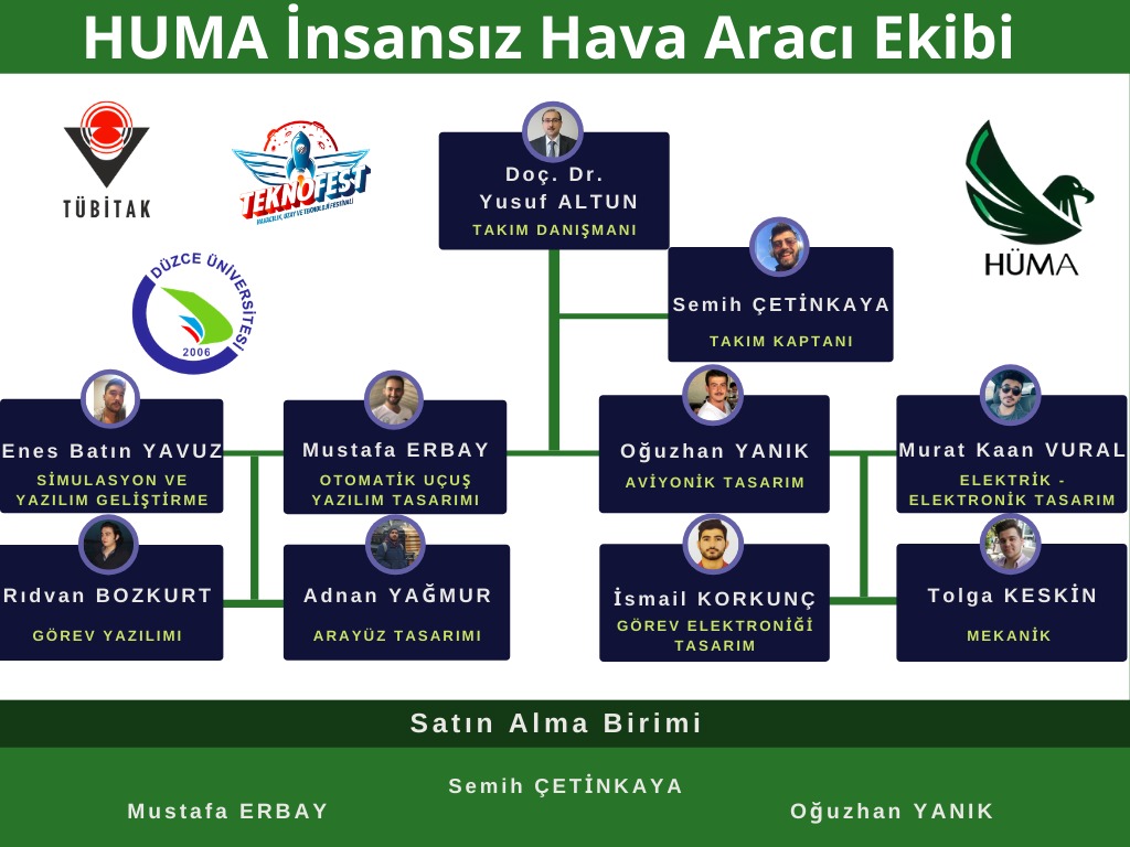 TEKNOFESTDünyanın en büyük havacılık, uzay ve teknoloji festivali TEKNOFEST 2021; T.C Sanayi ve Teknoloji Bakanlığı ile Türkiye Teknoloji Takımı Vakfı yürütücülüğünde, Türkiye’nin önde gelen teknoloji şirketleri, kamu, medya kuruluşları ve üniversitelerin destekleriyle düzenlenmektedir.2016 yılından günümüze kadar düzenlenen Uluslararası İnsansız Hava Araçları (İHA) Yarışması, üniversite öğrencilerinin İHA teknolojileri hakkındaki farkındalıklarını arttırmayı, bu konuda çalışmalar yapmalarını teşvik etmeyi ve Ülkemizin sahip olduğu rekabet gücünü arttırmayı amaçlamaktadır Değerlendirme ise; Kavramsal Tasarım Raporu, Detaylı Tasarım Raporu ve Uçuş ile Tanıtım/Rapor Videosu aşamaları üzerinden yapılmaktadır. Raporların ve videoların değerlendirilmesi sonucunda finalist takımlar belirlenmektedir.
