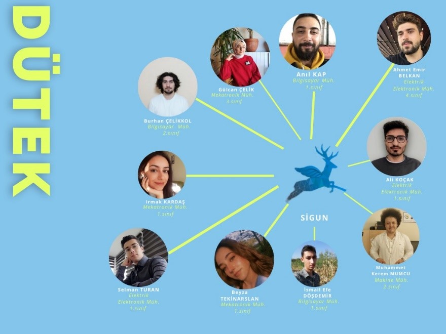Düzce Üniversitesi Teknofest’te Uluslararası İnsansız Hava Araçları Yarışmalarına; Mekatek, Dütek ve Alkın İha olmak üzere 3 takım halinde başvurusunu yaptı. teknofest 2021 Uluslararası İnsansız Hava Araçları Yarışması sonuçlarına göre, döner kanat kategorisinde 249 takım içerisinden ilk 100’de yer alarak final vizesini alan düzce Üniversitesi’nin üç takımı büyük bir başarıya imza attı.Yarışmada; Akademik Danışmanlığını Öğr. Gör. Süleyman Çeven’in, takım kaptanlığını ise Mustafa Bilim’in yaptığı Alkın İha takımı 85 puan ile 8. sırada yer aldı. Takım; Dilan Minteş, Furkan Sağlam ve Şamil Batuhan Sarı’dan oluşuyor.Akademik Danışmanlığını Doç. Dr. Yusuf Altun’un, takım kaptanlığını ise Semih Çetinkaya’nın yaptığı Mekatek Takımı 83 puan ile 18. yer aldı. Takım; Oğuzhan Yanık, Mustafa Erbay, Enes Batın Yavuz, Rıdvan Bozkurt, Murat Kaan Vural, Tolga Keskin, İsmail Korkunç ve Adnan Yağmur’dan oluşuyor.Takım kaptanlığını Selman Turan’ın yaptığı Dütek Takımı ise 76 puan ile 88. sırada yer aldı. Takım; Ali Koçak, Anıl Kap, Ahmet Emir Belkan, Beyza Tekinarslan, Burhan Çelikkol, Gülcan Çelik, Irmak Kardaş, İsmail Efe Döşdemir, Muhammet Kerem Mumcu’dan oluşuyor.Düzce Üniversitesi halen Covid-19 salgını etkileri devam etmesine rağmen Teknofest 2021 yarışmalarına toplam 25 takım halinde başvuru yaptı. Düzce Üniversitesi tarafından yapılan açıklamada “Uluslararası İnsansız Hava Araçları (İHA) Yarışması’nda büyük bir başarı ivmesi yakalayan takımlarımızı tebrik ediyor ve değerlendirme süreçleri devam eden diğer takımlarımıza da başarılar diliyoruz.” ifadelerine yer verildi.
