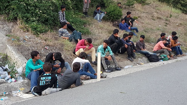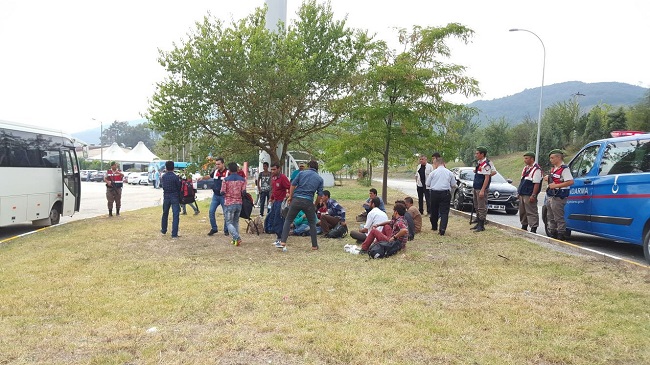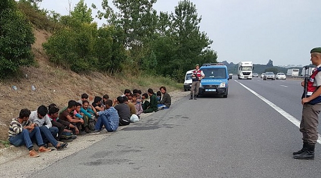 Düzce TEM otoyolu Gümüşova mevkiinde, ülkeye yasadışı yollarla giren afgan uyruklu 66 kişilik mülteci grubu yakalandı.