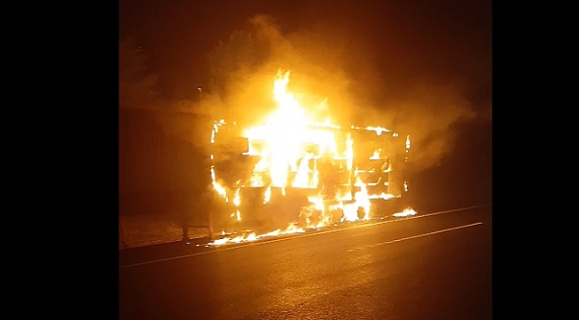 TEM otoyolunda park halindeki MDF yüklü TIR’ın dorse kısmı henüz belirlenemeyen bir nedenle yandı.
