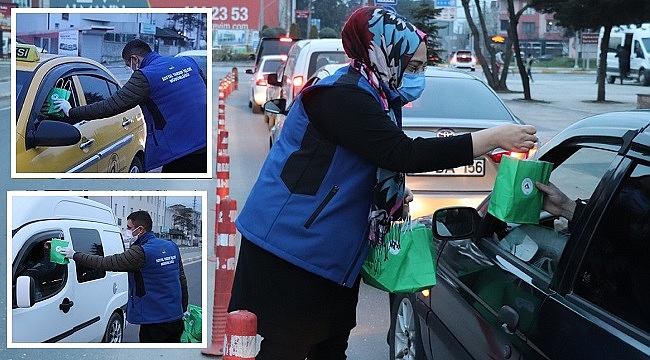 Düzce Belediyesi, Ramazan ayının ilk gününde iftara yetişemeyenlere trafik ışıklarında su, hurma ve sandviç dağıttı.