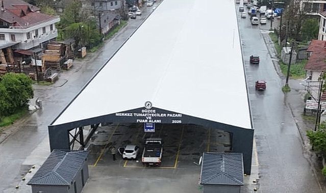 Düzce Belediyesi tarafından Aziziye Mahallesi’nde inşa edilen Tuhafiyeciler Pazaryeri, 23 Nisan Perşembe günü hizmete açıldı. Merkez Pazaryeri’nin devamı niteliğinde öz kaynaklar ile inşa edilen pazaryerinde, Temizlik İşleri Müdürlüğü tarafından temizlik çalışmaları yapıldı.3800 metrekare kapalı alana sahip olan ve 3 bloktan oluşan pazaryerinde, toplam 144 tuhafiyeci tezgahı bulunuyor. Geniş ve ferah yapısıyla dikkat çeken pazaryeri, esnaf ve vatandaşlara yeni ve modern bir alışveriş ortamı sunuyor.Pazartesi ve Perşembe günleri alışveriş için hizmet veren pazaryeri, haftanın diğer günlerinde ise fuar alanı olarak kullanılabilecek. Pazaryerinde, zabıta noktası, tuvaletler ve 50 araç kapasiteli otopark da bulunuyor.