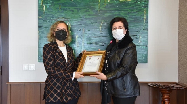 Kızılay Düzce Şubesi Yönetim Kurulu Üyelerinden Mustafa Bilgin, Şube Yetkilisi Nuray Tekin ve Kan Bağışı Kazanım Uzmanı Deniz Yomra, Düzce Üniversitesi Rektörü Prof. Dr. Nigar Demircan Çakar’ı ziyaret etti. Düzce Üniversitesi’nin kan bağışındaki değerli katkıları ve bölgesel bazda kan bağışı ile ilgili proje iş birliği çalışmalarına önemli katkılarından dolayı Düzce Üniversitesi Rektör’ü Prof. Dr. Nigar Demircan Çakar’a, Türk Kızılay Genel Başkanı Dr. Kerem Kınık imzalı gümüş madalya, madalya beratı ve gümüş levha takdiminde bulundu.2019’DA BİN 490 ÜNİTE KAN BAĞIŞI YAPILDI2019 yılında Düzce Üniversitesi bünyesindeki fakülte, yüksekokul, meslek yüksekokulları ile öğrenci yurtlarında toplam bin 490 ünite kan bağışı toplandığı için Türk Kızılay’ı, Düzce Üniversitesi’ni bu belgeleri takdim etmeye layık buldu. Rektör Çakar, 153 yıldır her koşulda topluma yardım elini uzatan ve bir iyilik hareketine dönüşen Türk Kızılay’ına teşekkür ederek, Düzce Üniversitesi’nin her zaman Türk Kızılay’ına iş birliği içerisinde katkı sunmaya devam edeceğini vurguladı. Kaynak (DÜZCE'NİN SESİ)