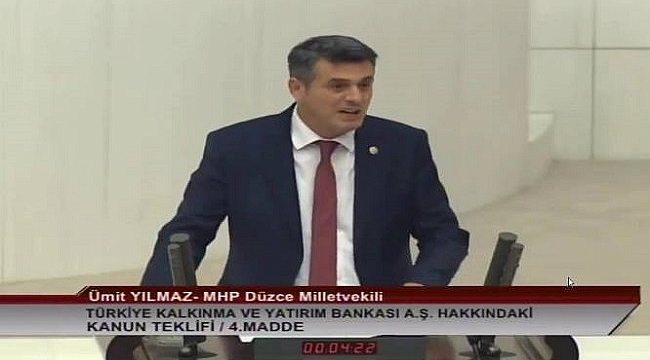 MHP Milletvekili Ümit Yılmaz, TBMM genel kurulunda uzun yıllardan sonra ilk kez Düzce’nin temel sorunlarını dile getirdi. AK Parti milletvekillerinin Düzce’nin sorunlarıyla ilgilenmedikleri bir süreçte Yılmaz’ın bu çıkışı, kamuoyunda takdirle karşılandı.MHP milletvekili Ümit Yılmaz, bir kanun teklifi görüşmeleri sırasında söz alarak TBMM genel kurulunda Düzce’nin yaşadığı ve çözüm bekleyen sorunlarını gündeme getirdi. Sağlıktan ulaşıma, tarımdan altyapıya kadar birçok alanda düzce halkının yaşadığı sıkıntıları anlatan Yılmaz, “16 yıllık iktidarında Düzce AK Parti’ye büyük destek vermiştir, ancak karşılığını alamamıştır. Acil çözüm bekleyen sorunlarımız vardır. Bu sorunların bir an önce çözüme kavuşturulması gerekmektedir” dedi.Yılmaz’ın, TBMM kürsüsünden Düzce sorunlarını dile getirmesi ve çözüm istemesi, kamuoyunda olumlu karşılandı. Sosyal medyadan yapılan yorumlarda, “Düzcemiz’in sesi çıkmaya başladı. Vekillik böyle bir şey, yan gel yat, cebin dolsun değil. İlk defa Düzce sorunlarına değinen vekil. AKP’li vekiller Düzce’nin sorunlarını ağızlarına almazken, Ümit bey golleri art arda sıralamış. 2 tane daha vekil var, onlar nerede, kimi temsil ediyorlar” şeklinde tepkiler dile getirildi.