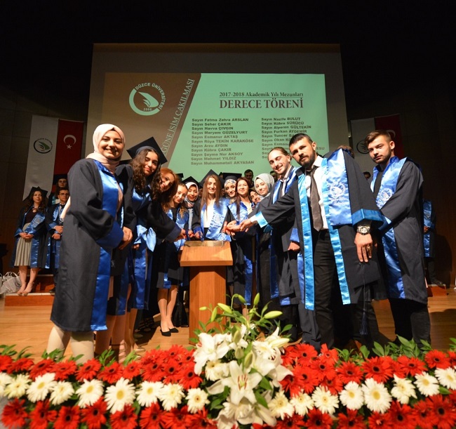 Eğitim-öğretim, bilimsel araştırma, sosyal sorumluluk ve bölgesel kalkınma gibi birçok alanda şehrimize ve bölgemize önemli katkılar sunan düzce Üniversitesi, düzenlediği “2017-2018 Akademik Yılı Mezunları Derece Töreni” ile öğrencilerini mezun etmenin gururunu yaşadı.Cumhuriyet Konferans Salonu’nda düzenlenen programa; Düzce Üniversitesi Rektörü Prof. Dr. Nigar Demircan Çakar, Düzce Belediye Başkan Yardımcısı Miktat Çelebioğlu, Düzce Ticaret ve Sanayi Odası Yönetim Kurulu Başkanı Tuncay Şahin, protokol üyeleri, öğretim elemanları ile dereceye giren öğrenciler ve aileleri katıldı.