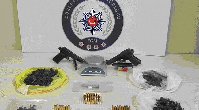 Düzce’de yapılan uyuşturucu operasyonunda 117,7 gram uyuşturucu ve 2 adet silah ele geçirildi.