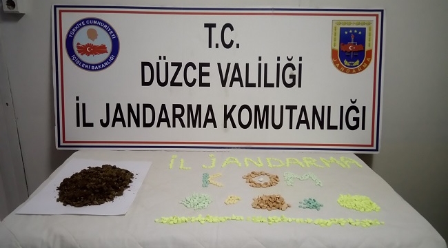 Edinilen bilgiye göre, düzce İl Jandarma Komutanlığınca İstanbul ilinden uyuşturucu madde getireceği tespit edilen Ü.A. isimli şahsın kullandığı otomobil, Gümüşova ilçe merkezi D-100 karayolunda durduruldu. Yapılan üst ve araç aramasında toplam 971 adet uyuşturucu hap (extacy), 163 gram skunk diye tabir edilen uyuşturucu madde ve 1 gram kokain ele geçirildi. Ayrıca şahsın ikamet ettiği, Düzce Merkez Beyciler Mahallesi'nde bulunan adresinde yapılan aramada 1 adet uyuşturucu hap (extacy), 6 adet içilmiş vaziyette sigaralık, yaklaşık 10 gram kenevir tohumu, bir adet terazi ele geçirildi.