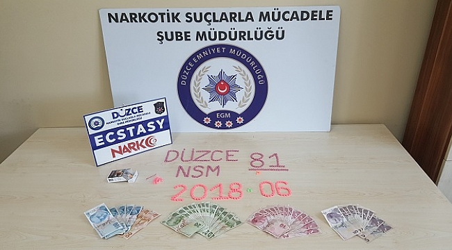 Düzce Narkotik Polisi uyuşturucu operasyonu düzenledi.Yapılan açıklama şöyle:Düzce İl Emniyet Müdürlüğü Narkotik Suçlarla Mücadele Şube Müdürlüğü ekiplerince, düzce Cumhuriyet Başsavcılığı koordinesinde yürütülen çalışmalar neticesinde; ilimiz merkezinde uyuşturucu madde ticareti yaptığı tespit edilen şüpheli 1 şahıs 29.06.2018 günü düzenlenen operasyon sonucu yakalanarak gözaltına alınmıştır.Şüpheli şahsın aracında, ikametinde ve iş yerinde yapılan aramalarda 442 (Dört Yüz Kırk İki) adet uyuşturucu uyarıcı madde ecstasy ve suçtan elde edildiği değerlendirilen 1060 (Bin Altmış) Türk Lirası ele geçirilmiştir.Şüpheli şahsın uyuşturucu maddeyi temin ettiği İstanbul ilindeki 1 şüpheli şahıs da yakalanarak gözaltına alınmıştır.Şüpheli 2 şahıs tamamlanan işlemlerinin ardından Uyuşturucu Madde Ticareti Yapmak suçundan sevk edildiği Adli Makamlarca Tutuklanarak Cezaevine teslim edilmiştir.Suçla mücadelemiz halkımızın da desteği ile aralıksız devam etmektedir.