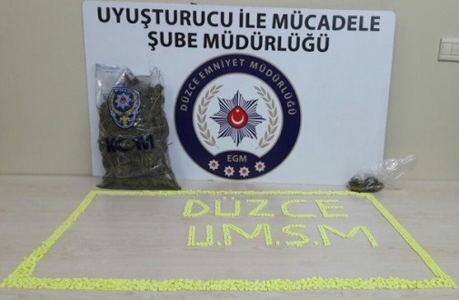 Düzce polisinin düzenlediği baskında 1 kilo 26 gram kubar esrar ile bin 680 adet Extacy hap ele geçirildi.