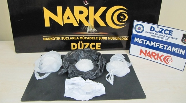 Düzce üzerinden uyuşturucu madde sevkiyatı yapan 3 düzce İl Emniyet Müdürlüğü Narkotik Suçlarla Mücadele Şube Müdürlüğü ekiplerince yapılan operasyonda yakalandı.Düzce İl Emniyet Müdürlüğü Narkotik Suçlarla Mücadele Şube Müdürlüğü ekiplerince, Düzce Cumhuriyet Başsavcılığı koordinesinde yürütülen çalışmalarda Düzce üzerinden uyuşturucu madde sevkiyatı yapan 3 şüpheli 10 Temmuz günü yapılan operasyon neticesinde yakalandı.Yakalanan şüphelilerin içerisinde bulunduğu iki araç içerisinde yapılan aramada 4 parça halinde 423 gram Metamfetamin maddesi ele geçirildi.3 şüpheli tamamlanan işlemlerinin ardından Uyuşturucu Madde Ticareti Yapmak suçundan sevk edildiği Sulh Ceza Hakimliğince Tutuklanarak Cezaevine teslim edildi.