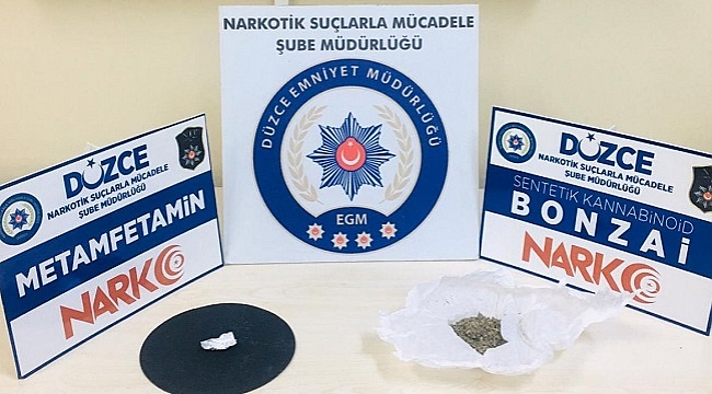 Düzce Narkotik Suçlarla Mücadele Şube Müdürlüğü ekiplerince Kaynaşlı Otoban gişelerinde durdurulan araçta, şüpheli şahıs yakalandı. Yapılan açıklama şöyle: "Düzce İl Emniyet Müdürlüğü Narkotik Suçlarla Mücadele Şube Müdürlüğü ekiplerince, düzce Cumhuriyet Başsavcılığı koordinesinde yürütülen çalışmalarda;12.05.2020 günü ilimiz Kaynaşlı Otoban gişelerinde durdurulan araçta, şüpheli 2 (iki) şahıs yakalanmıştır.Yakalanan şüphelilerin aracında ve üzerlerinde yapılan aramalarda 25 gram Sentetik Kannobinoid Maddesi ve bir miktar Metamfetamin maddesi ele geçirilmiştir.Şüpheli 2 (iki) şahıs hakkında uyuşturucu Madde Bulundurmak ve Kullanmak suçundan adli işlem yapılmıştır.Suçla mücadelemiz halkımızın da desteği ile aralıksız devam etmektedir."