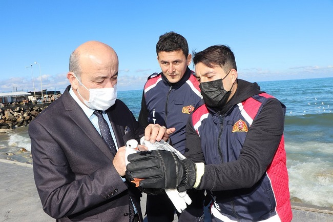 Akçakoca Belediye Başkan Yardımcısı Yüksel Yılmaz, kayalıklara sıkışan martıya ilk müdahaleyi itfaiye ekipleri ile birlikte yaptı.Akçakoca Belediye Başkan yardımcısı Veteriner Yüksel Yılmaz kayalıklara sıkışan martının kurtarılması için itfaiyeye talimat verdi. Kısa sürede martının sıkıştığı limana gelen itfaiye ekipleri yaralı martıyı bulunduğu yerden çıkarttı. Yaralı kuşa ilk kontrolü çıkarıldığı yerde yapan başkan yardımcısı Yılmaz, martının veteriner kliniğine götürülerek tedavisinin başlanması için itfaiye personeline talimat verdi.Başkan Yardımcısı Yılmaz, "İnsan olmanın yolu hayvan sevgisiyle başlar. Hayvan sevgisi, insanların çevresiyle hatta hayatla bağını kuvvetlendirir, Hazreti Mevlana’nın dediği gibi, “Yaratılanı yaratandan ötürü severiz” dedi.