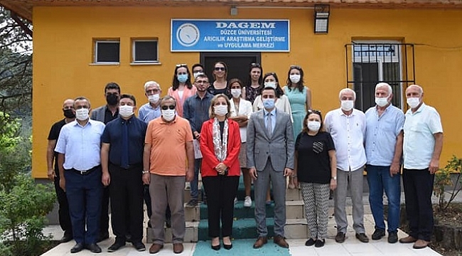 Üniversitemiz arıcılık Araştırma Geliştirme ve Uygulama Merkezi (DAGEM), düzce İl Tarım ve Orman Müdürlüğü ve Düzce İli Arı Yetiştiricileri Birliği’yle ortaklaşa düzenlenen, Bakanlık onaylı “Ana Arı Yetiştirme Teknikleri Kursu” katılımcılara sertifikaların takdim edilmesiyle sona erdi.Yığılca’daki Arıcılık Araştırma Geliştirme ve Uygulama Merkezi’nde düzenlenen programa Rektör Prof. Dr. Nigar Demircan Çakar, Yığılca Kaymakamı Talha Altuntaş, Yığılca Belediye Başkanı Rasim Çam, protokol üyeleri, dagem çalışanları ve sertifika almaya hak kazanan kursiyerler katıldı.DAGEM Müdürü Doç. Dr. Meral Kekeçoğlu, halkı bilinçlendirmek adına arıcılık kursları düzenleyerek kadın ve genç istihdamını artırmayı amaçladıklarını ifade etti.Ana arı üretim kursunu önemsediklerini ve kursun büyük ilgi gördüğünü belirten Kekeçoğlu, Yığılca’nın bölgesel kalkınmasında ana arı üretiminin büyük bir faktör olduğuna değindi. Prof. Dr. Nigar Demircan Çakar da, akademi ve bilimin üretime katkı sağladığını görmekten büyük mutluluk duyduğunu dile getirdi. Üniversitemizin arıcılıktaki başarılarının, 2010 yılında Yığılca’daki potansiyeli keşfetmesiyle başladığına dikkat çeken Rektörümüz, o vizyonun ana arı üretiminden arı ile ilgili ürünlerin farklı alanlarda kullanımına kadar ilerlediğini sözlerine ekledi. Dünya bal üretiminde ikinci sırada yer alan Ülkemizin, kovan verimliliği açısından ise 20. sıralarda yer aldığını ifade eden Rektör, daha bilimsel yöntemlerle dünya lideri olunabileceğini dillendirdi.Açılış ve protokol konuşmalarının ardından kursiyerlere sertifikaları takdim edildi. Program, geleceğe bir nefes olmak adına toplumsal farkındalık oluşturan kestane fidesi dikimi ile sona erdi.