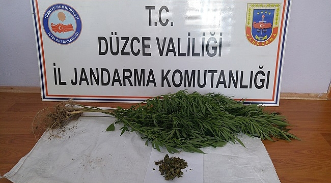 Edinilen bilgiye göre, düzce İl Jandarma Komutanlığı ekipleri tarafından Yığılca ilçesi Çamlı köyünde ikamet eden bir şahsın evinde esrar maddesi bulundurduğu duyumu alınması üzerine,çalışma yapıldı. Şahsın ev ve eklentilerinde yapılan aramada 50 gram kubar esrar maddesi ile 7 kök kenevir bitkisi ele geçirildi.