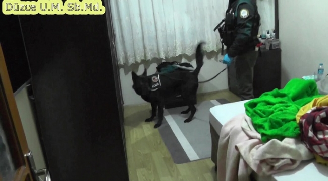 Düzce Emniyet Müdürlüğü Uyuşturucu ile Mücadele Şube Müdürlüğü ekipleri tarafından yapılan operasyonunda 10 kişi tutuklandı. Düzce Polisi uyuşturucu satıcılarına göz açtırmıyor. düzce İl Emniyet Müdürlüğü Uyuşturucu ile Mücadele Şube Müdürlüğü ekipleri uyuşturucu ile mücadele kapsamında sokak satıcılarına yönelik operasyonlar düzenledi.Narkotik köpeği Shadow ile yapılan aramalarda uyuşturucu madde ele geçirildi. Konu ile ilgili olarak Düzce Valiliği’nden şu açıklama yapıldı:Uyuşturucu ile mücadele kapsamında yürütülen planlı çalışmalarda neticesinde Düzce Merkez Çiftepınarlar ve Orhangazi Mahallesi’nde organize olarak uyuşturucu madde ticareti yaptığı tespit edilen şahıslara yönelik yapılan uzun süreli takipler neticesi şüpheli 8 şahıs eş zamanlı operasyon sonucu uyuşturucu madde ticareti yapmak suçundan yakalandı. Şüphelilerin ikametlerinde yapılan aramalarda satışa hazır vaziyette 95 gram Sentetik Kannobinoid maddesi, 32,2 gram Esrar maddesi, 1 Adet Ruhsatsız Av Tüfeği, Uyuşturucu satışından elde edilen bin 705 TL nakit para ele geçirildi. Şüpheli şahıslardan uyuşturucu madde temin ettiği tespit edilen 20 şahıs 90,7 gram Eroin, 51,9 gram Sentetik Kannobinoid (Bonzai), 1 adet Ecstasy Hap ve 1 gram uyuşturucu Meteamfetamin maddeleri ile yakalanarak haklarından uyuşturucu madde ticareti yapmak ve uyuşturucu madde bulundurmak kullanmak suçlarından adli işlemler yapılmıştır. Örgütlü olarak uyuşturucu madde ticareti yapmak suçundan gözaltına alınan 8 şüpheli şahıs adli makamlara sevk edildi. Şüphelilerden 1 şahıs Cumhuriyet Savcısı kararı ile 1 şahıs adli kontrol ile serbest kalmış, diğer şüpheli E.Ö., R. S., M. Z., F. Ç., M. U. ve M. Z. ise uyuşturucu madde ticareti suçundan tutuklanarak cezaevine teslim edildiler. Şahıslardan uyuşturucu madde temin ederek irtibatlı olarak uyuşturucu madde ticareti yaptığı tespit edilen 4 şahıs farklı tarihlerde tutuklanarak cezaevine teslim edilmişlerdi. Soruşturma kapsamında toplamda 10 şahıs tutuklanarak cezaevine gönderildi.